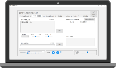 入力したテキストが自動で音源化されるので、簡単に好きな内容を放送できます。